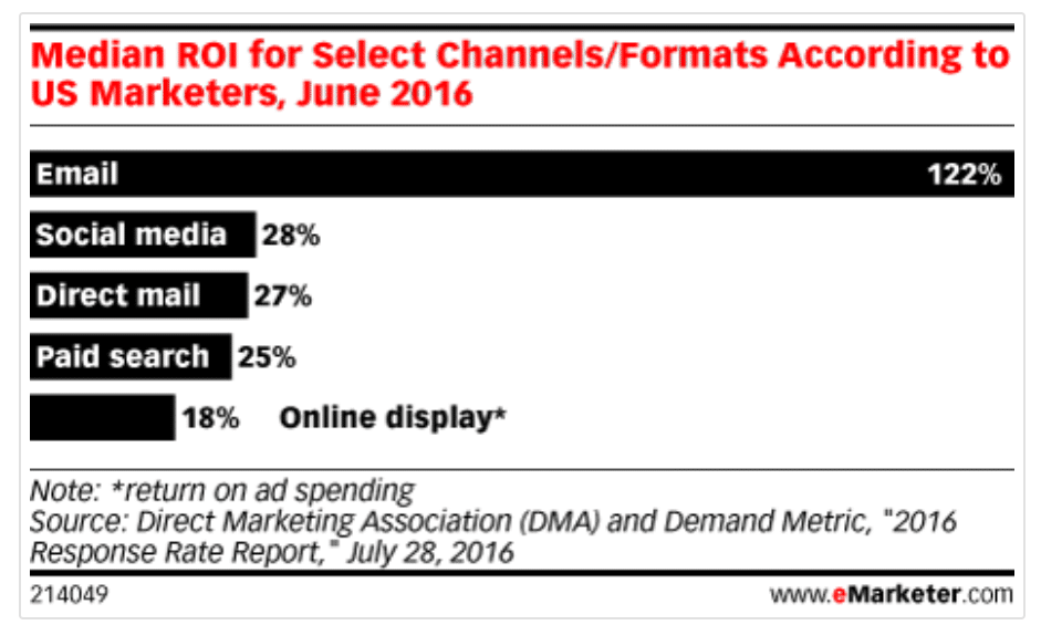 The third reason confirms the prior two. On average, email generates a 122% return on the cost to run a campaign. When you compare that to the other mediums – especially direct mail and social media – there is no competition. Email is king and that is why email has grown exponentially in popularity.